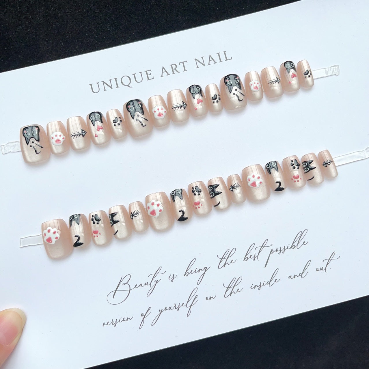 • For light-colored nails worn for a week with reuse in mind, solid glue is advisable.