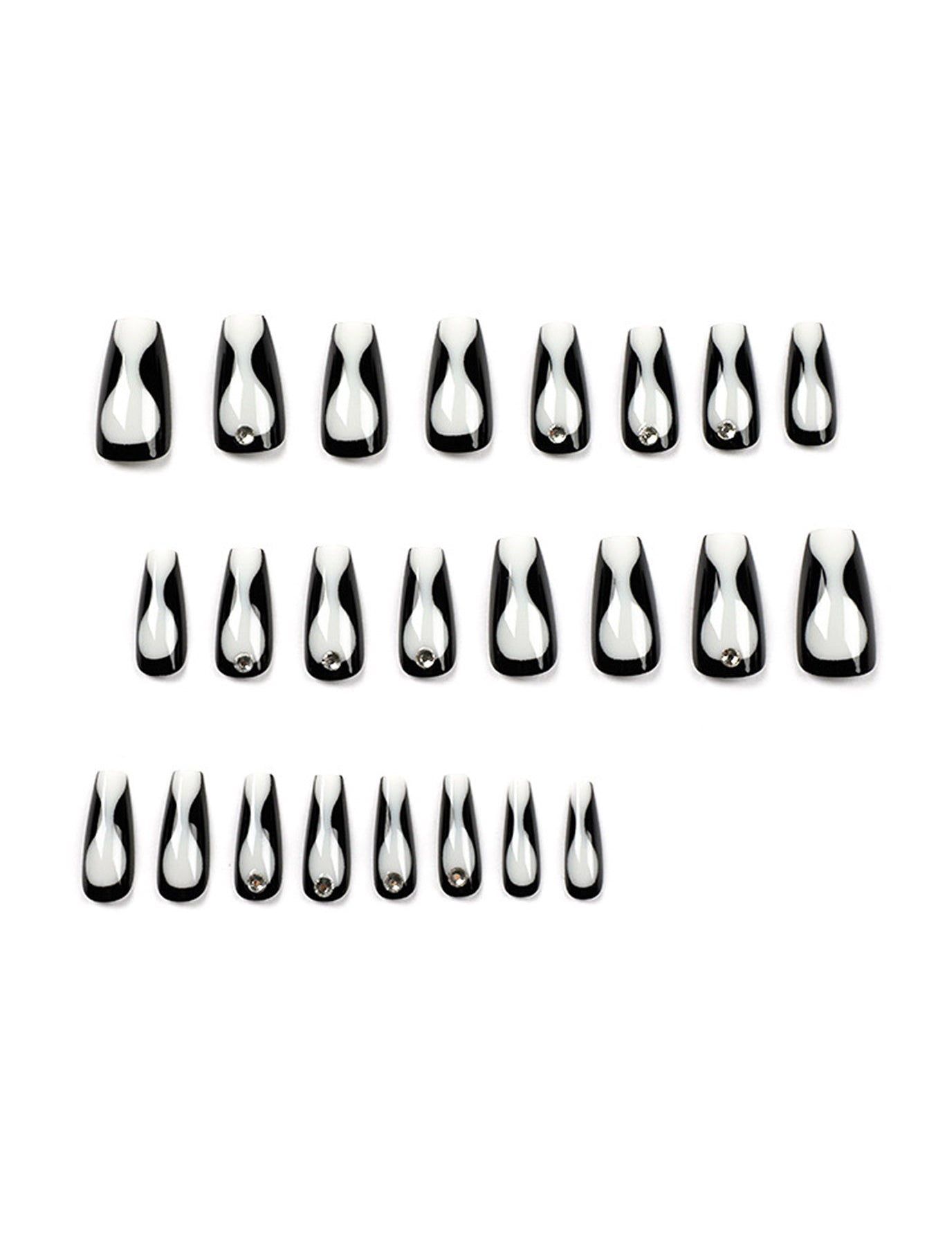 • 12 sizes. 24 nails per box: Each set of 24 press-on nails. available in 12 different sizes. ensures a perfect custom fit. Plus. you'll get everything you need. including nail glue. adhesive tabs. a double-sided nail file. and a cuticle stick.