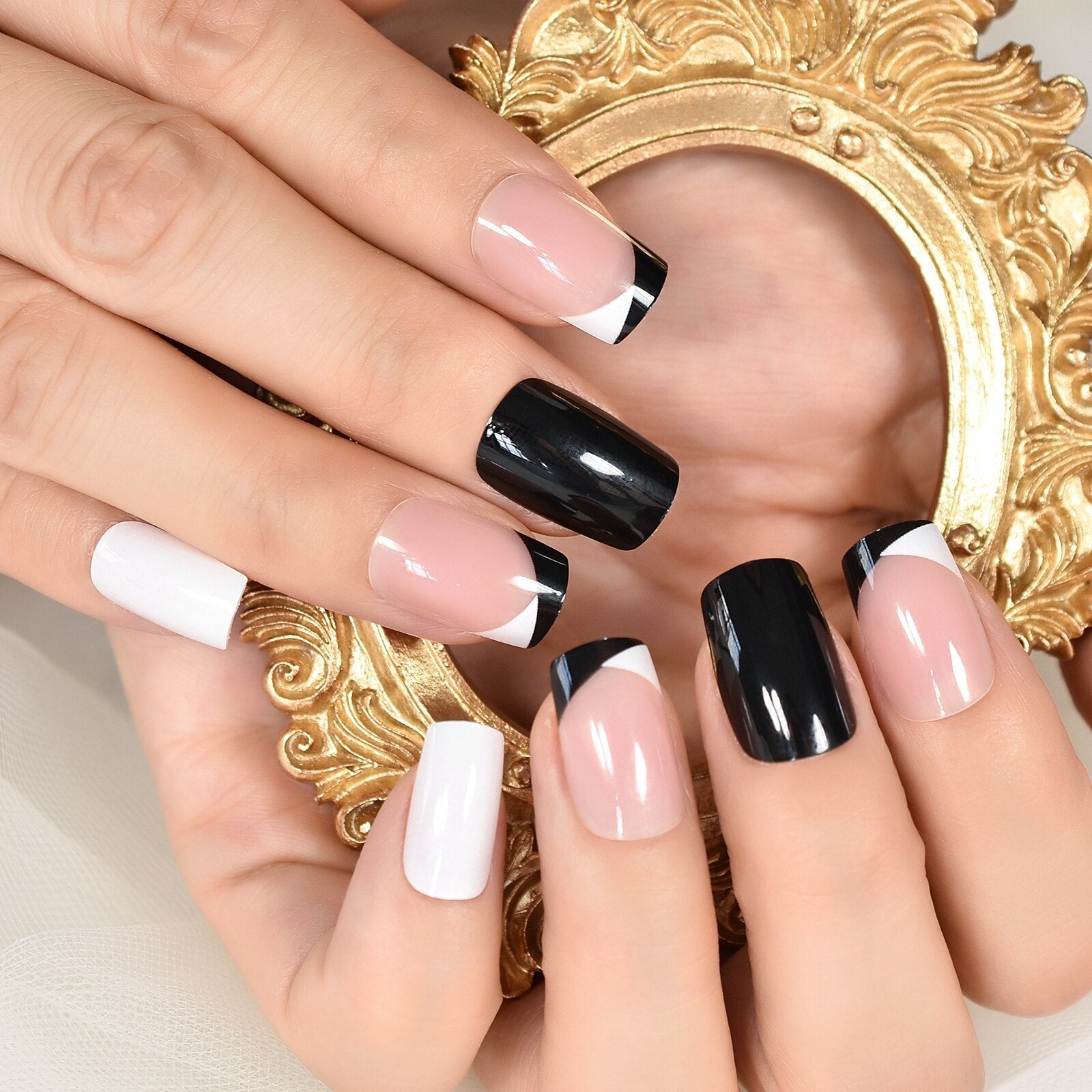 Including: 1 kit of 23~24pcs nails + 1 sheet of glue sticker.